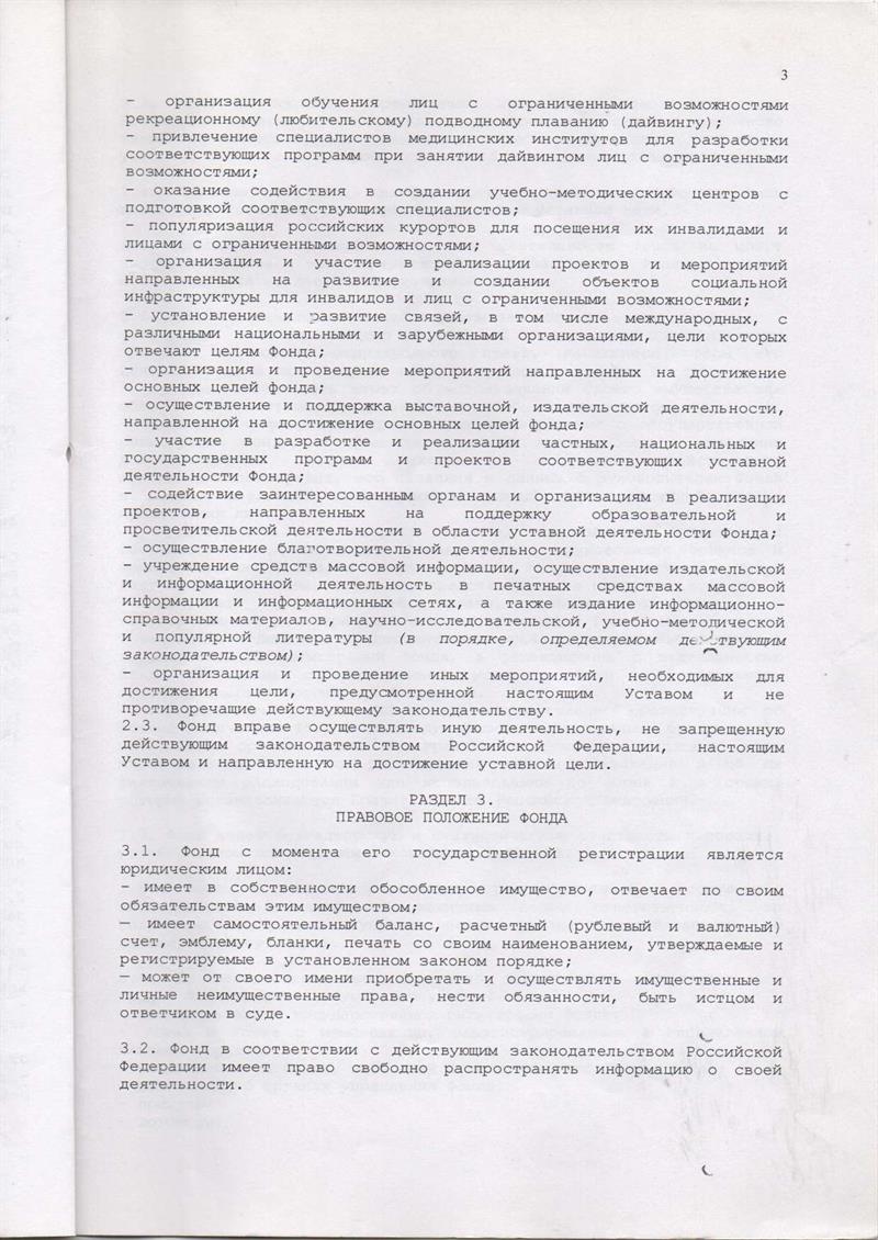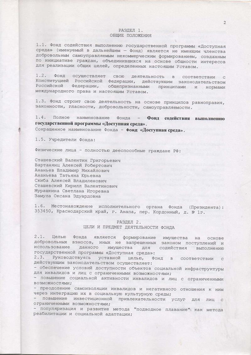 Устав Фонда содействия выполнению государственной программы «Доступная среда».