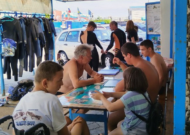 Сегодняшние занятия преподнесли новый приятный сюрприз-первый баллон выработанный до "красного сектора", первые самостоятельные заплывы, уже уверенные выходы на учебный маршрут и это всё у новичков. А старшая группа села готовиться к сдаче экзаменов на сертификат ОWD. Теоретические занятия с инструктором Валерием Викторовичем Фурсовым, а потом каждый со своим инструктором в воду закреплять знания на практике.