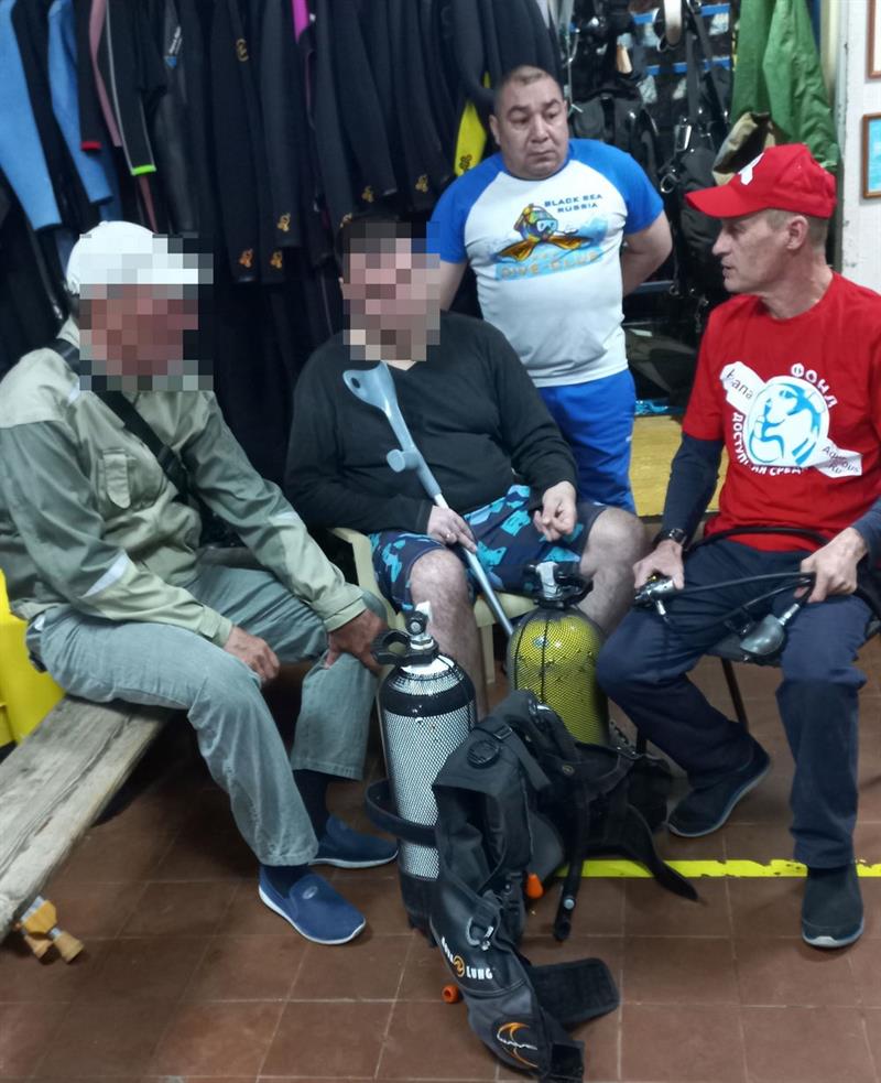 Фонд «Доступная среда» совместно с клубом подводного плавания «Аква-Глобус» приступил к выполнению программы Гранта Губернатора Кубани «Оздоровительная подводная кинезитерапия для ветеранов боевых действий». Инструктор клуба «Аква-Глобус» Алексей Вартанянц и координатор программы Владимир Прохоренко провели вводный теоретический курс и продемонстрировали практические упражнения на открытой воде для первых участников программы. К сожалению низкая температура морской воды (+13) и отсутствие необходимых «сухих» гидрокостюмов не позволили парням совершить пробное погружения, но азарта и мотивации у них явно прибавилось. Как только вода в море прогреется выше +18 градусов, ждем ребят снова.