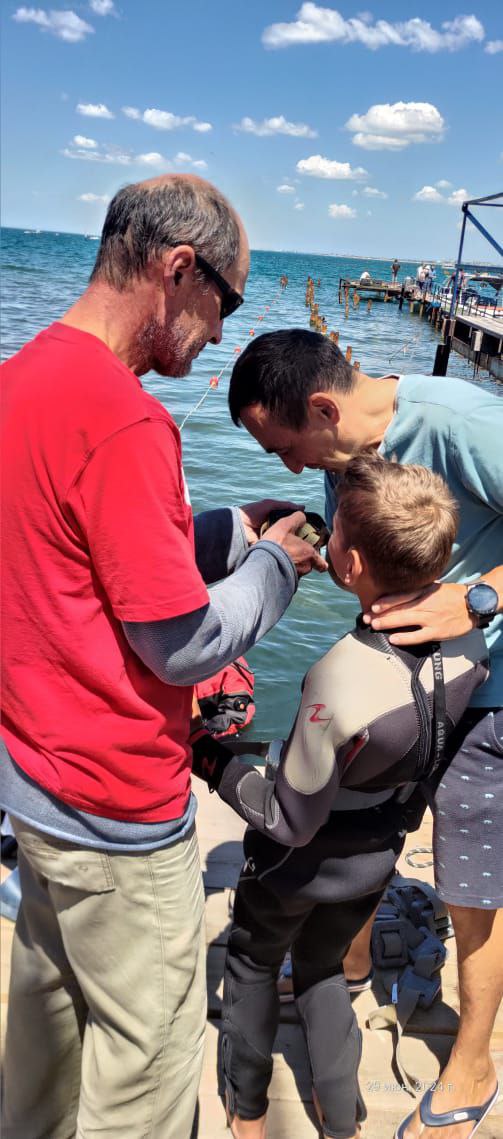 Не смотря на достаточно холодную +19°С воду, посовещавшись с родителями, мы решили провести первое пробное занятие в воде. Передать эмоции детей и родителей пожалуй смогут только они сами. А мы, инструкторский состав, уже планируем следующие погружения