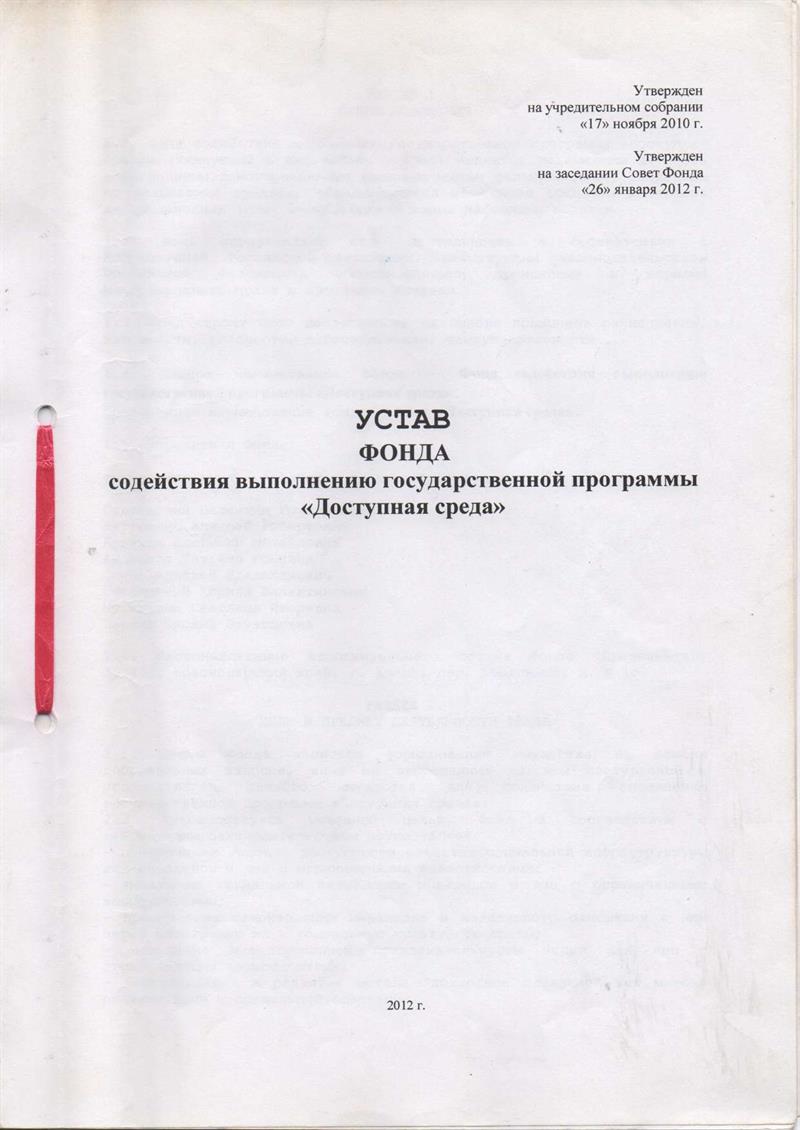 Устав Фонда содействия выполнению государственной программы «Доступная среда».